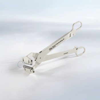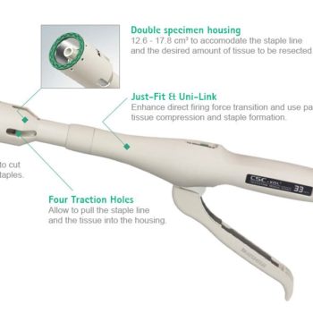- HUG staple with closed leg bends upward – Unique design for a secure purse string
